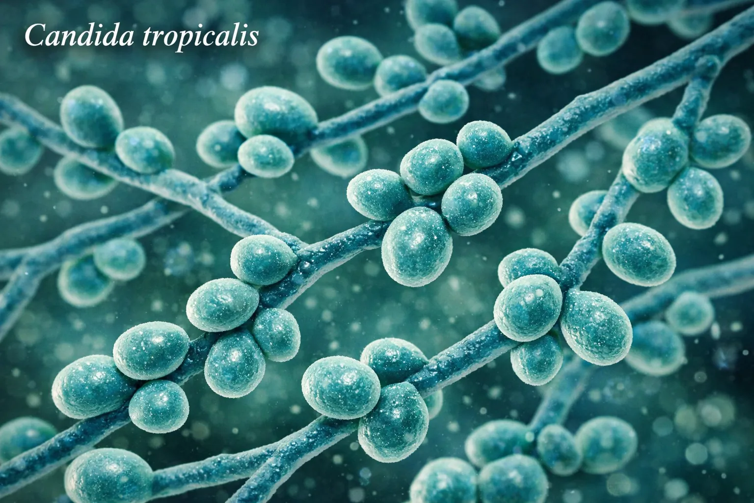 カンジダ・トロピカリス(Candida tropicalis)は、カンジダ属に属する酵母様真菌の一種で、ヒトや動物の皮膚、粘膜、消化管、尿路などに常在することがあります。特に病院内での感染例が多く報告されており、「院内感染の原因菌」としても知られています。しかし、この菌は病院だけでなく、湿度の高い住環境にも潜んでおり、感染の原因となることがあります。