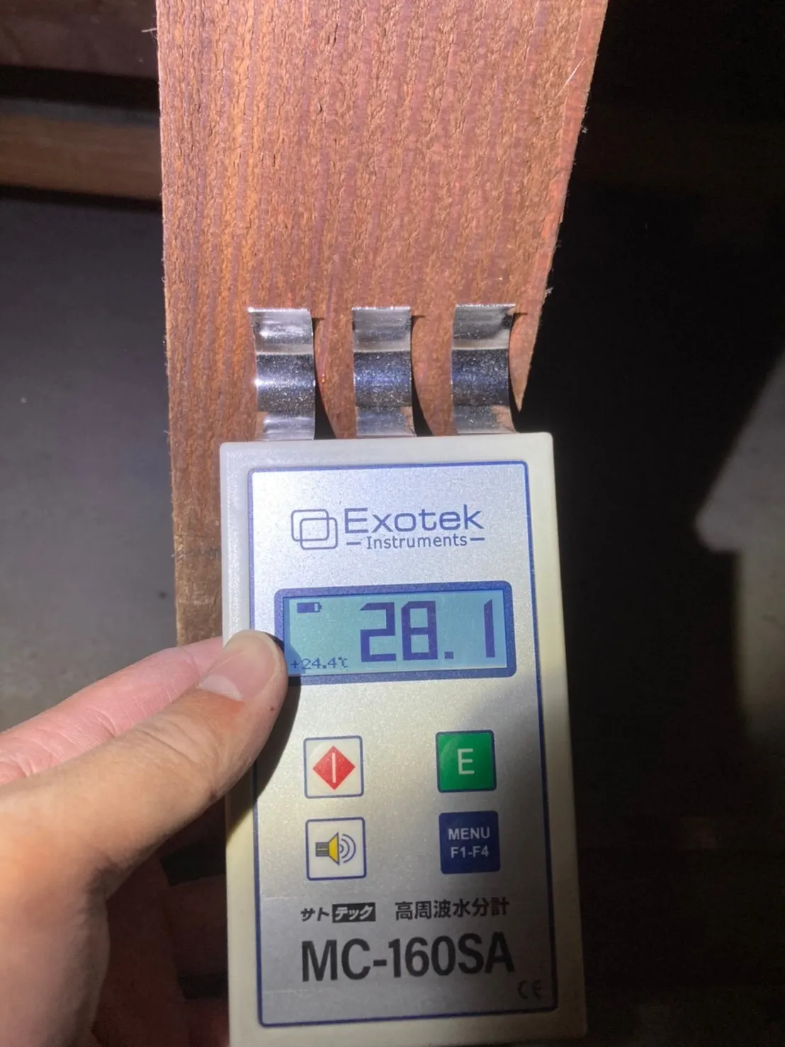 そこで重要になるのが含水率測定です。含水率とは、木材や建材にどれだけ水分が含まれているかを数値で測定する方法です。この測定を行うことで、どの部分に水分が残っているのか、そして乾燥がどの程度進んでいるのかを把握することができます。