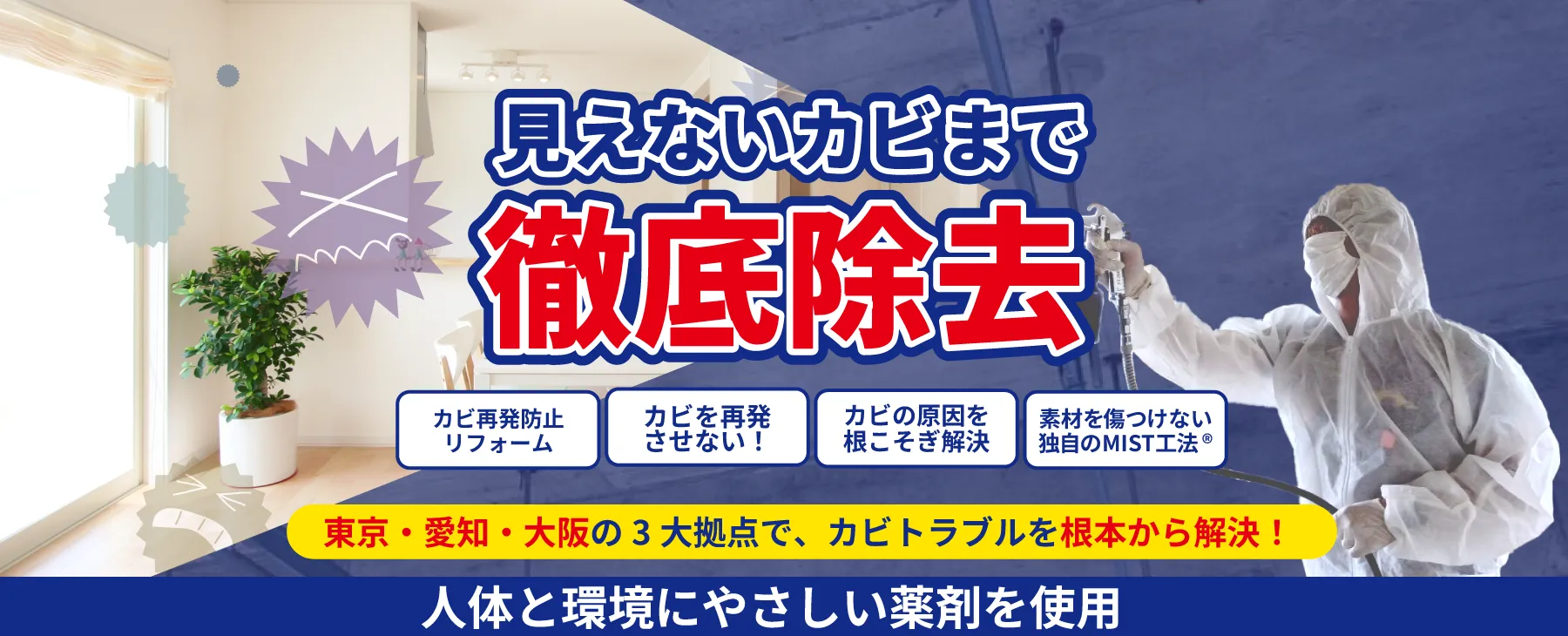 日本全国対応のMIST工法®カビバスターズ代理店カビ取リフォームまで、ぜひお気軽にご相談ください。